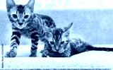 2 kittens breed Bengal cats playing on the couch