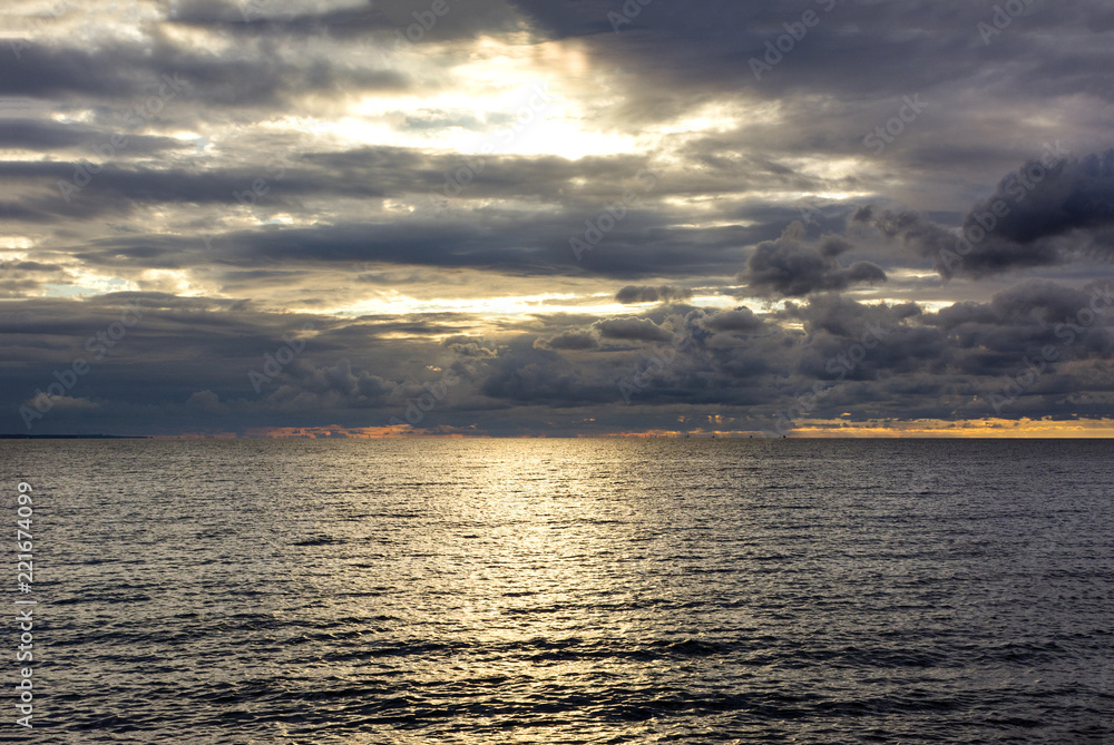 view of the Gulf of Finland at sunset, dark clouds are not sky, sea water, seascape
