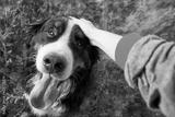 the girl is a pet owner petting a happy smiling dog. Lovely dog friend