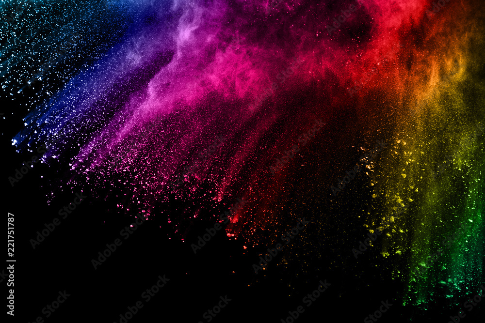 abstract colored dust explosion on a black background.abstract powder splatted background,Freeze motion of color powder exploding/throwing color powder, multicolored glitter texture.