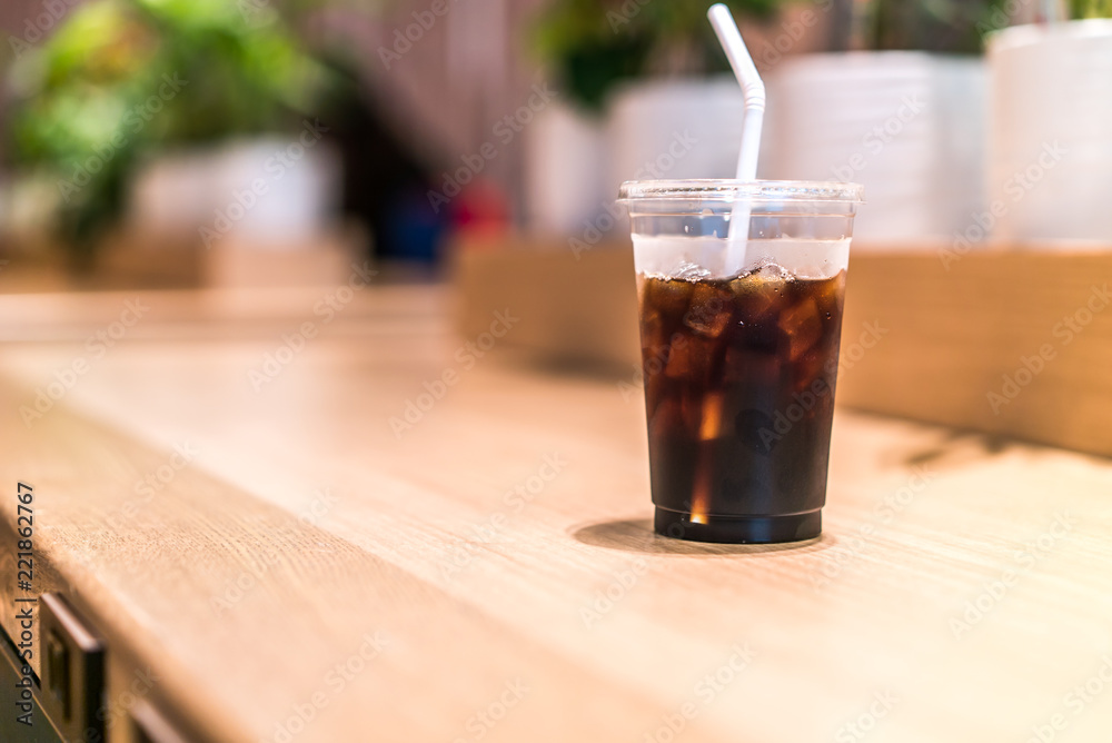 ice drink on wood table in cafe shop restaurant with beautiful light decoration party