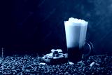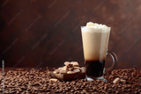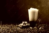 Coffee drink or cocktail with cream and pieces of brown sugar.