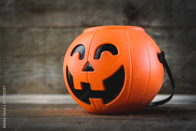 Halloween candies on wood table - holiday background