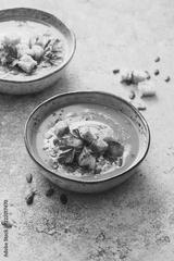Pumpkin and carrot soup with cream and parsley. Concept for healthy eating and nutrition.