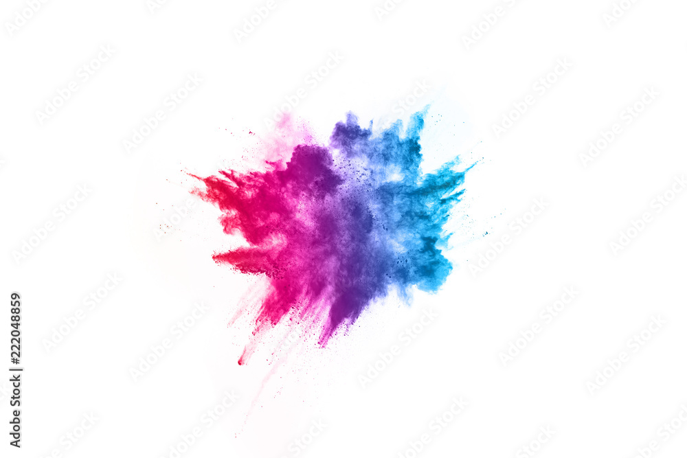 Colorful powder explosion on white background. Colored cloud. Colorful dust explode. Paint Holi.