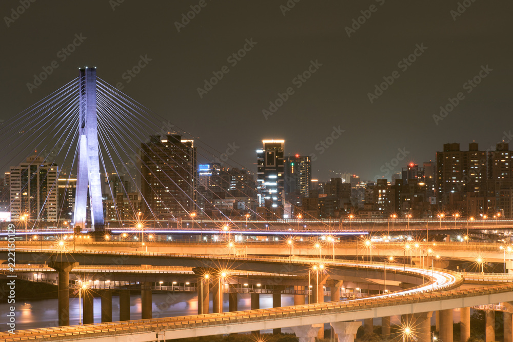 Car Light Trails of New Taipei Bridge - Busy Taipei bridge after working hours