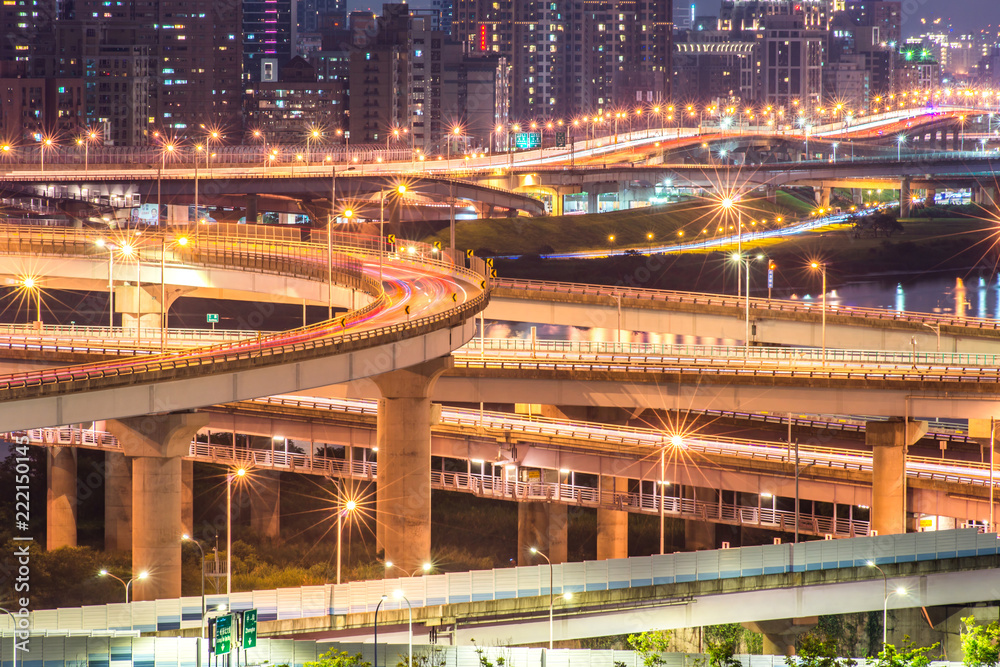 Car Light Trails of New Taipei Bridge - Busy Taipei bridge after working hours