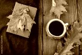 Delicious coffee and notepad. The concept of autumn, still life, relaxation, study.
