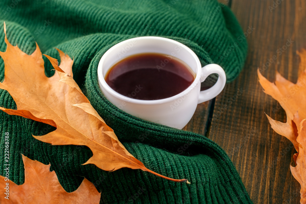 Delicious hot coffee. The concept of autumn, still life, relaxation, study.