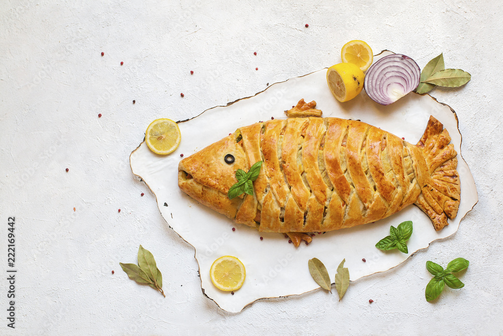 Homemade Fish Pie made from smoked salmon and spinach, and homemade dough made from white wine and olive oil.