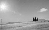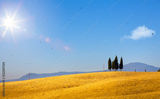 typical Tuscany countryside landscape; sunset over rolling hills and Tuscany farmland