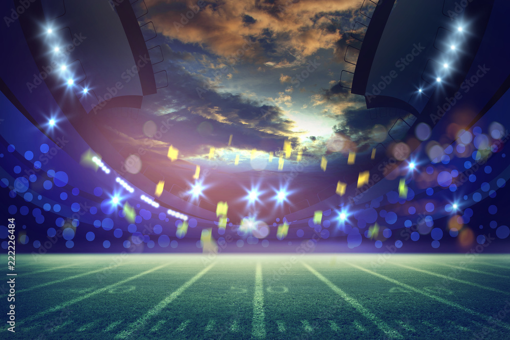 American Soccer Stadium 3d rendering. Mixed photos