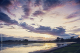 Grass on the field during sunrise. Agricultural landscape in the summer time in Thailand