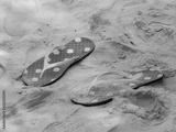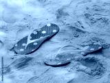 pink slippers on sand beach