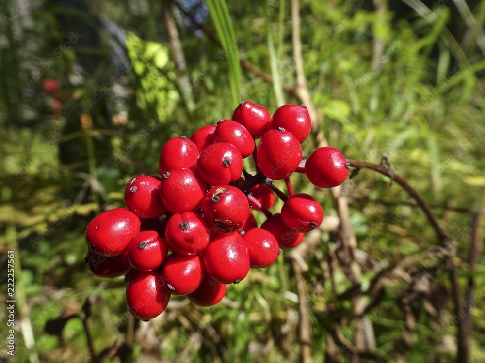 Ripe red berries of poisonous forest plant (Actaea rubra)