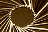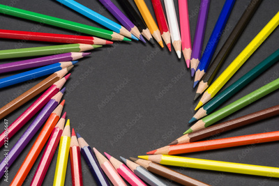 Circular frame made of colored pencil tips, isolated on black cardboard