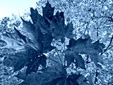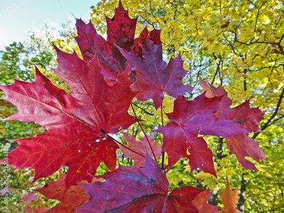 Red maple leaves on the background of yellow foliage-Indian summer.