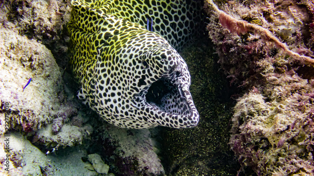 Spotted Yellow Moray Eel from the tropical Maldives.
