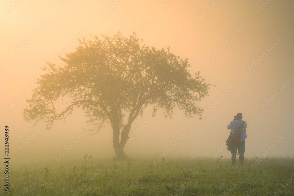 Man standing on a hill under the big tree