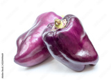 Organic purple bell peppers isolated on white background