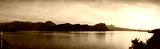 Large magnificent panorama extra wide. XL Switzerland. Large panorama of Lake Lucerne. Mountains in the evening sunset. In the background city of Lucerne.