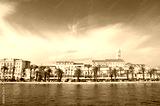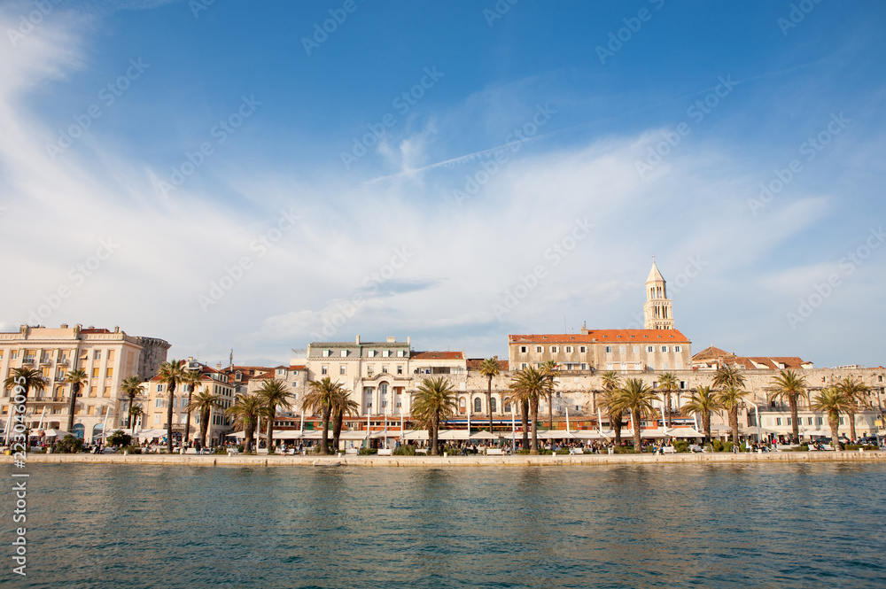 Split city with the Riva Promenade and the Diocletian Palace, waterfront view, in Croatia