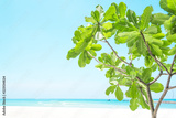 Beautiful white sand beach and tree with island in summer time concept travel, holiday and vacation. Tropical paradise beach nature landscape in Thailand
