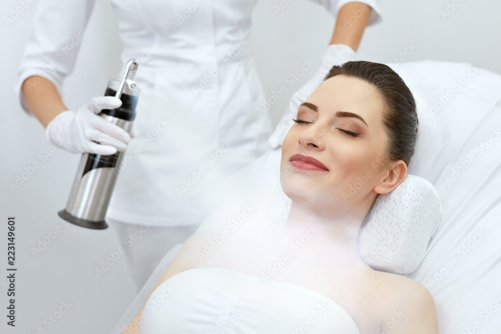 Cosmetology. Woman At Facial Oxygen Cryotherapy At Beauty Centre