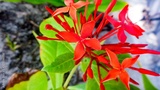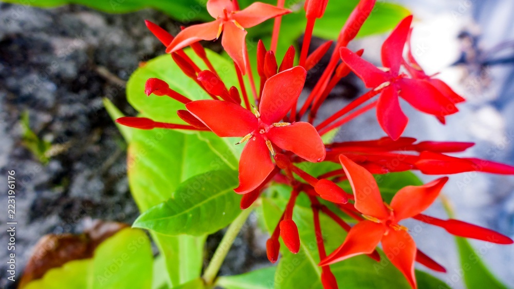 Beautiful Red spike flowers of Ixora chinensis in Maldives.