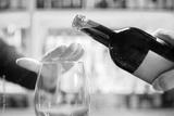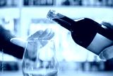 Woman hand rejecting more alcohol from wine bottle in bar