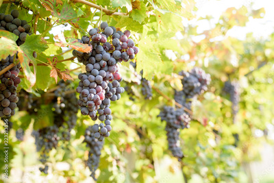 Bunches of ripe red grapes ready to be picked up and will become a tasty wine like Valpolicella, Amarone or Recioto