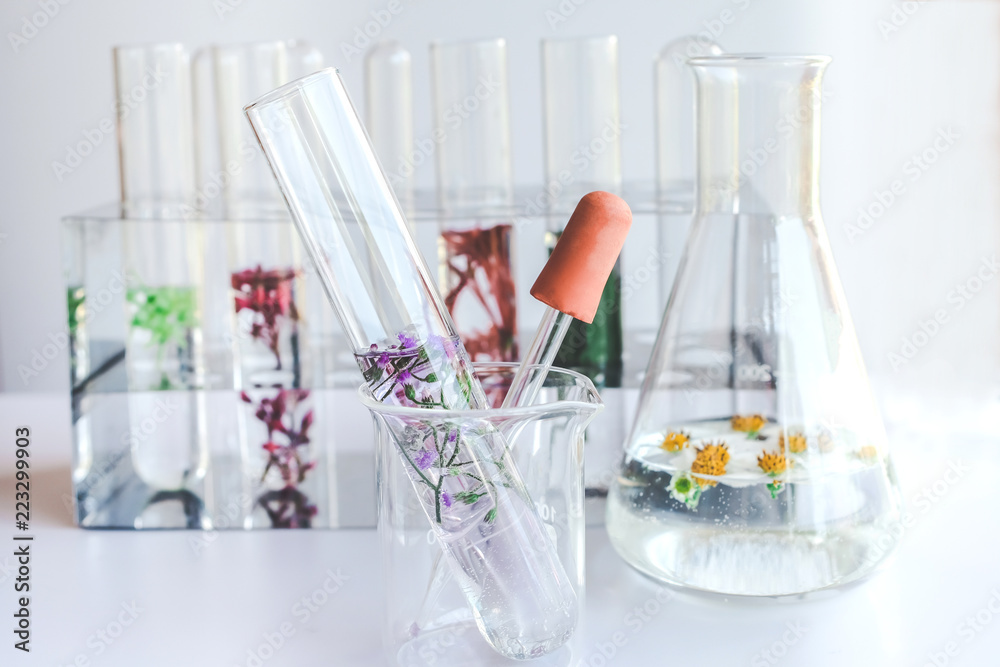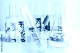 Small plants in test tube for biotechnology medicine research.
