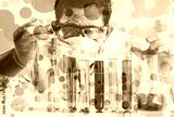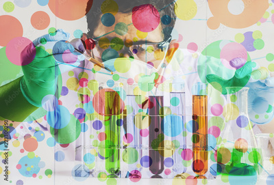 Double exposure scientist in laboratory to research with test tube , science concept.
