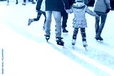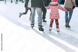People ride on the skating rink on the ice rink during the Christmas holidays. Sports and fun pastime.