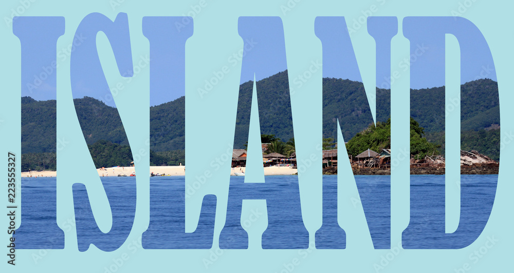 Inscription Island on a background of a sea landscape and a tropical island.