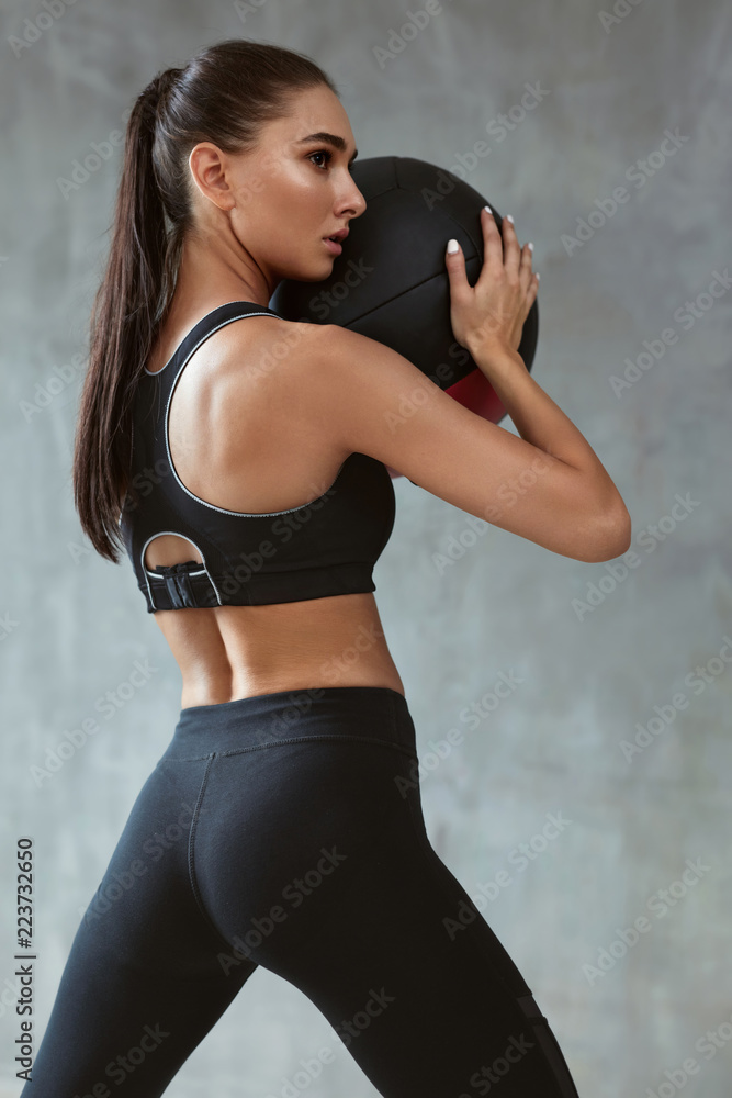 Sports Woman Training In Fashion Black Sportswear