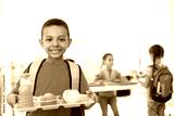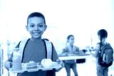 African-American boy holding tray with healthy food at school canteen
