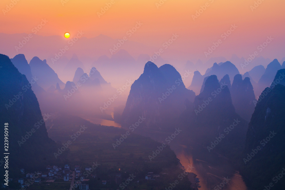 Sunrise Landscape of Guilin , Li River and Karst mountains called Xingping