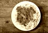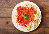plate of pasta with tomato sauce, top view