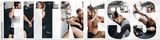 Collage of two young friends high fiving in a gym