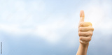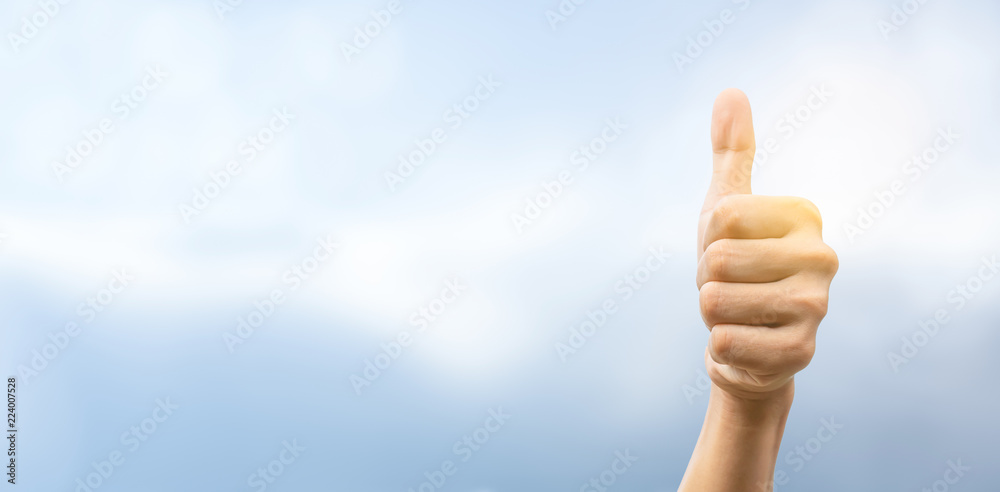 The hand of a businessman shows an excellent mark with a thumb up. Excellent work, congratulates and businessman success concept.