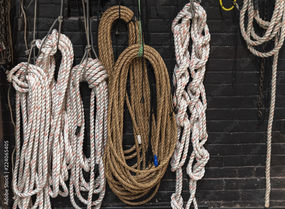 ropes hanging on a wall