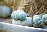 Big pile of pumpkins on hay in a wooden cart the season of harvest. Happy Thanksgiving Day. Harvest festival.