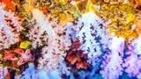 Beautiful, brightly colorful soft corals in cave, Maldives.