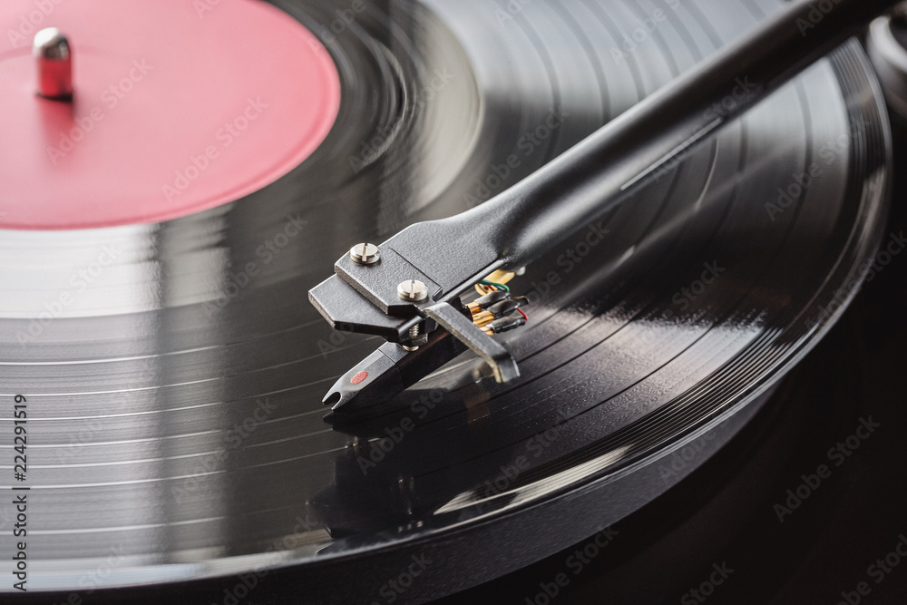 Close up,focus on needle cartridge headshell.Hifi sound system