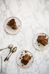 Homemade gluten free, vegetarian сarrot, banana and nuts Cake on white marble background