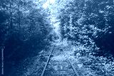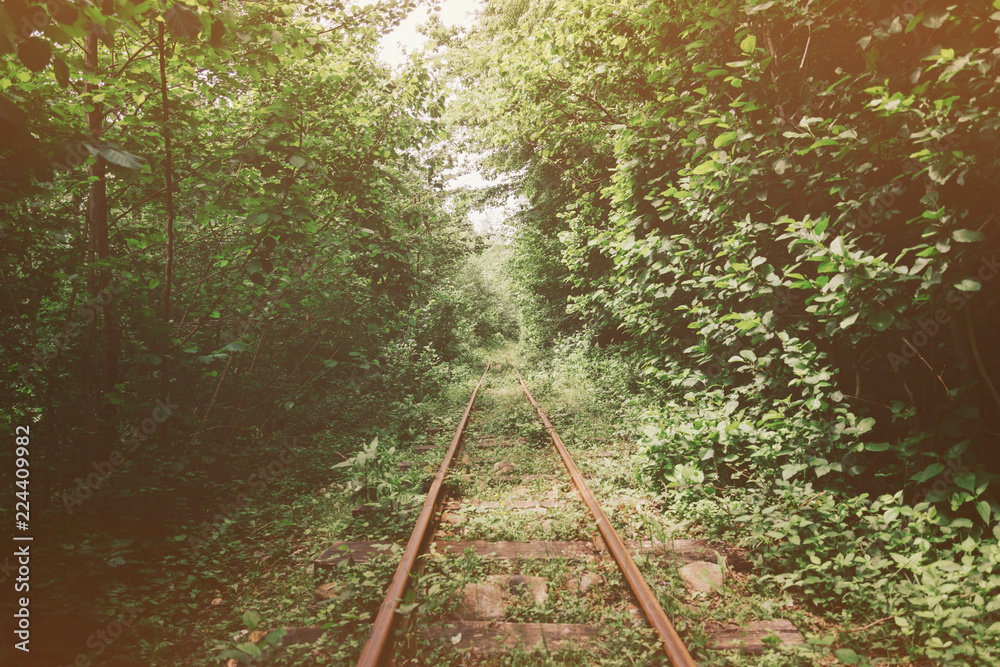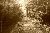 Narrow-gauge railway among trees.