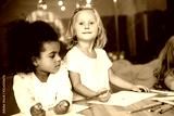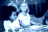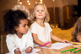 adorable multicultural children drawing together in kindergarten