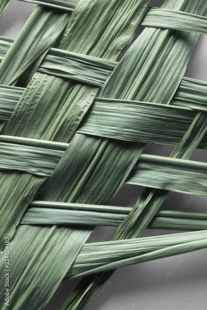Texture of braided bamboo leaves, natural background