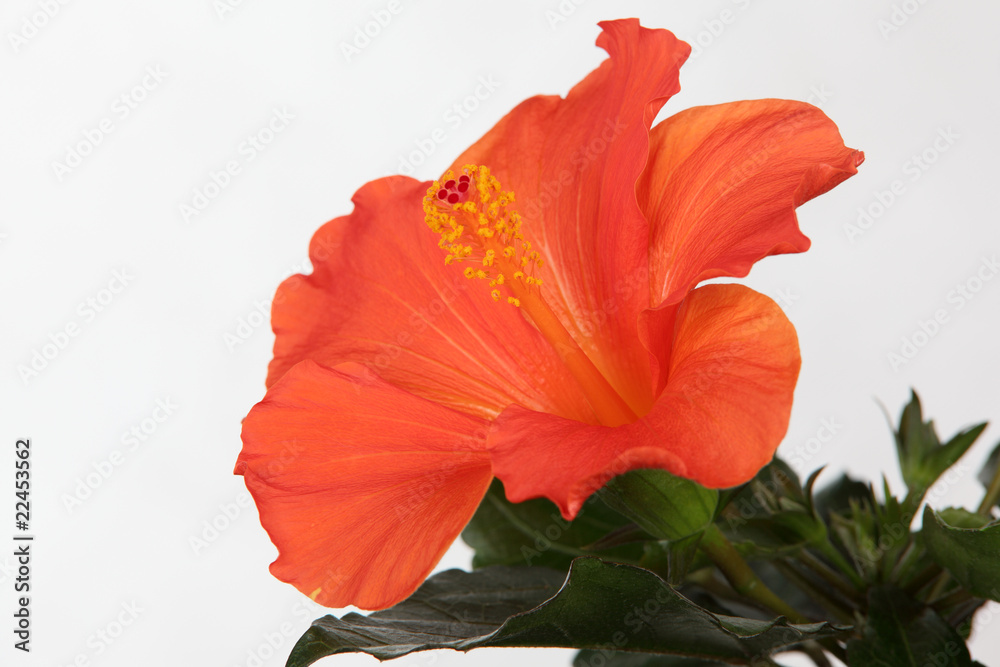 Red hibiscus flower isolated on the white background